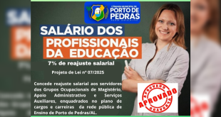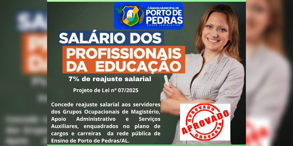 Ler Mais»Câmara aprova reajuste salarial dos servidores do magistério enquadrados no plano de cargos e carreiras da rede pública de ensino de Porto de Pedras.